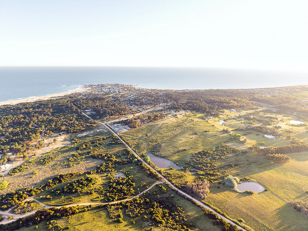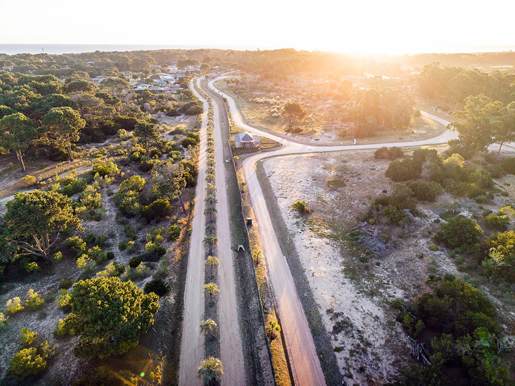 Arriba del pueblo de José Ignacio, pasando la rotonda, a 400 metros, entras a un bosque escondido, Médanos y Pinos, un nuevo barrio privado en José Ignacio.